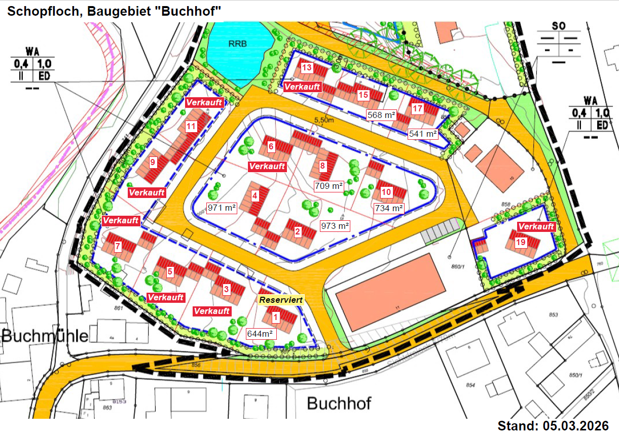 Im Jahr 2021 wurde der südliche Teil des Bebauungsplanes Nr. 12 "Buchhof" von der Marktgemeinde Schopfloch erschlossen.